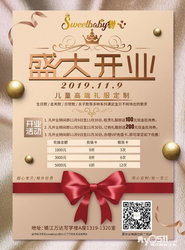 镇江首家儿童高端礼服定制租赁店开业啦!