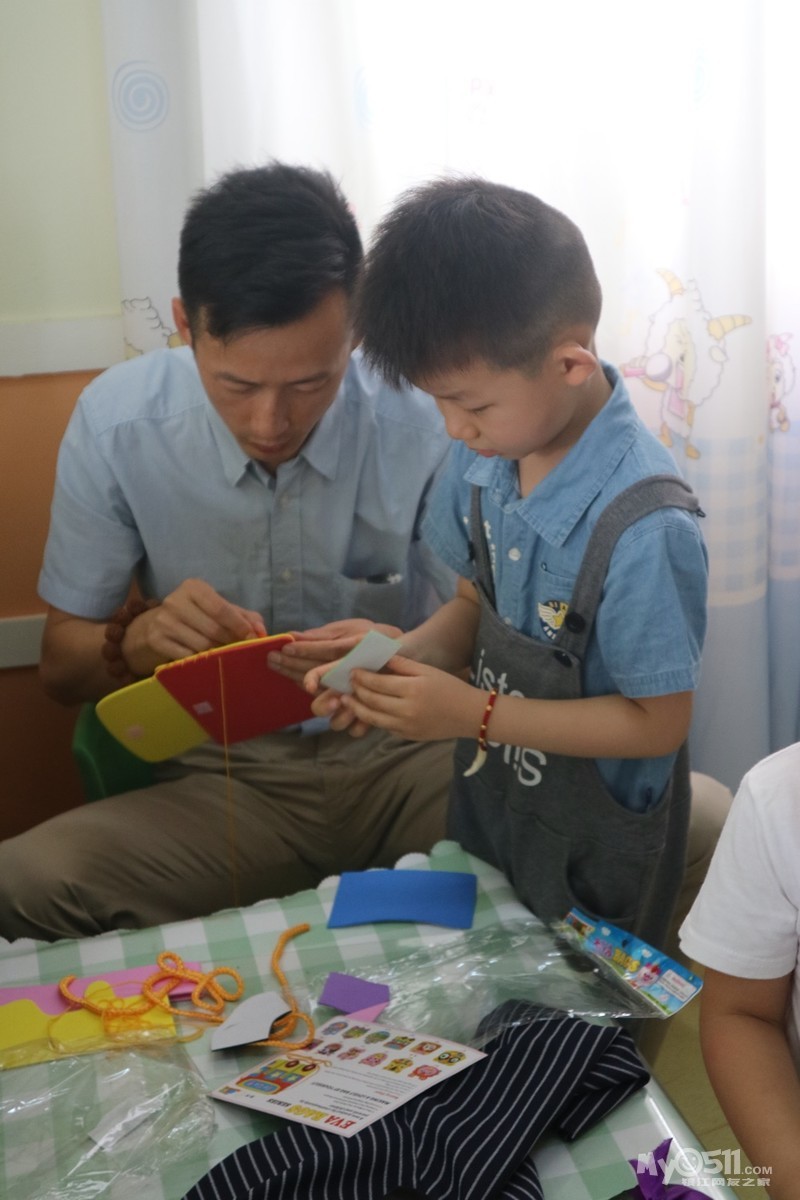 父爱是一缕阳光,让你的心灵即使在炎热的夏天也能感到温暖如春;父爱是一泓清泉,让你的情感即使蒙上岁月的风尘依然纯洁明净。父爱是一种默默无闻,寓于无形之中的一种感情。 在孩子们的心中,您是那么的伟大、威武,是他们心中最崇拜和尊敬的人,是他们永远学习的榜样,在父情节即将来临之际,我园中班组开展了“父爱如山 一路相伴”亲子活动,为此,我园精心准备了“厨艺大比评”,“针线活”等系列DIY活动,提供给孩子和爸爸沟通交流而机会,增进父子、父女之间的感情。