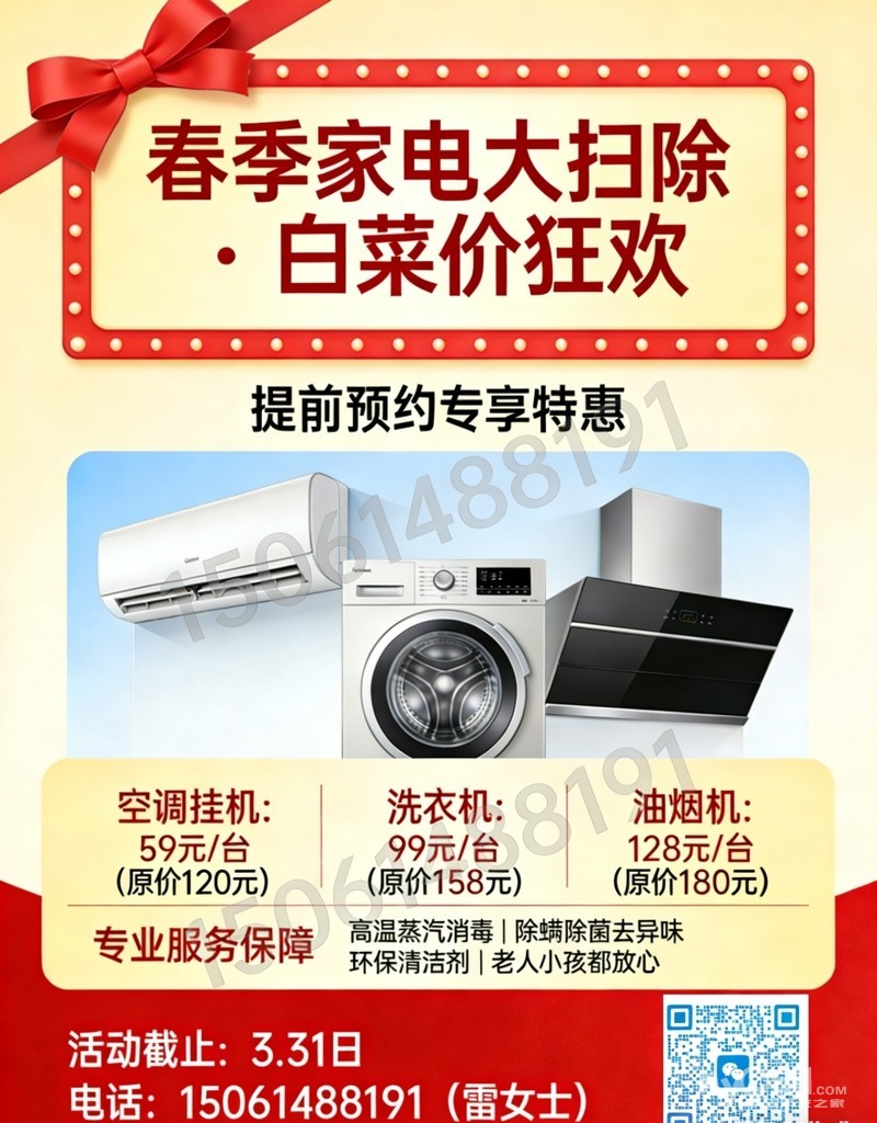 家点清洗福利来喽,空调,洗衣机,油烟机最低59