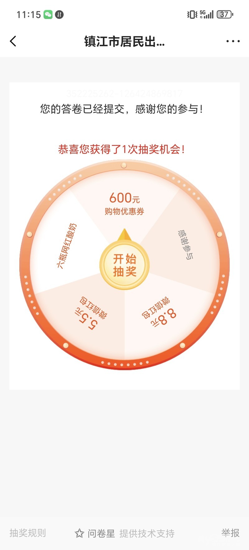 问卷已填写,祈祷中奖!!!
