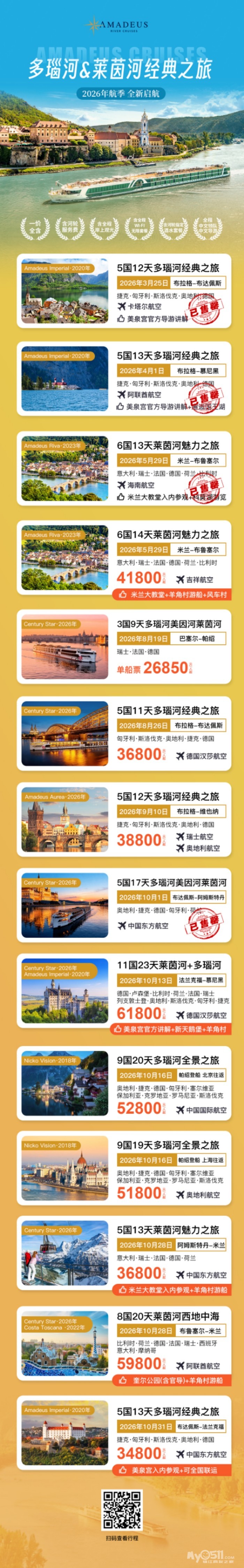 12.❤阿玛迪斯 Imperial号 10月31日上海往返(可申请全国联运)多瑙河经典之旅13天(FM+MU布达佩斯-法兰克福)