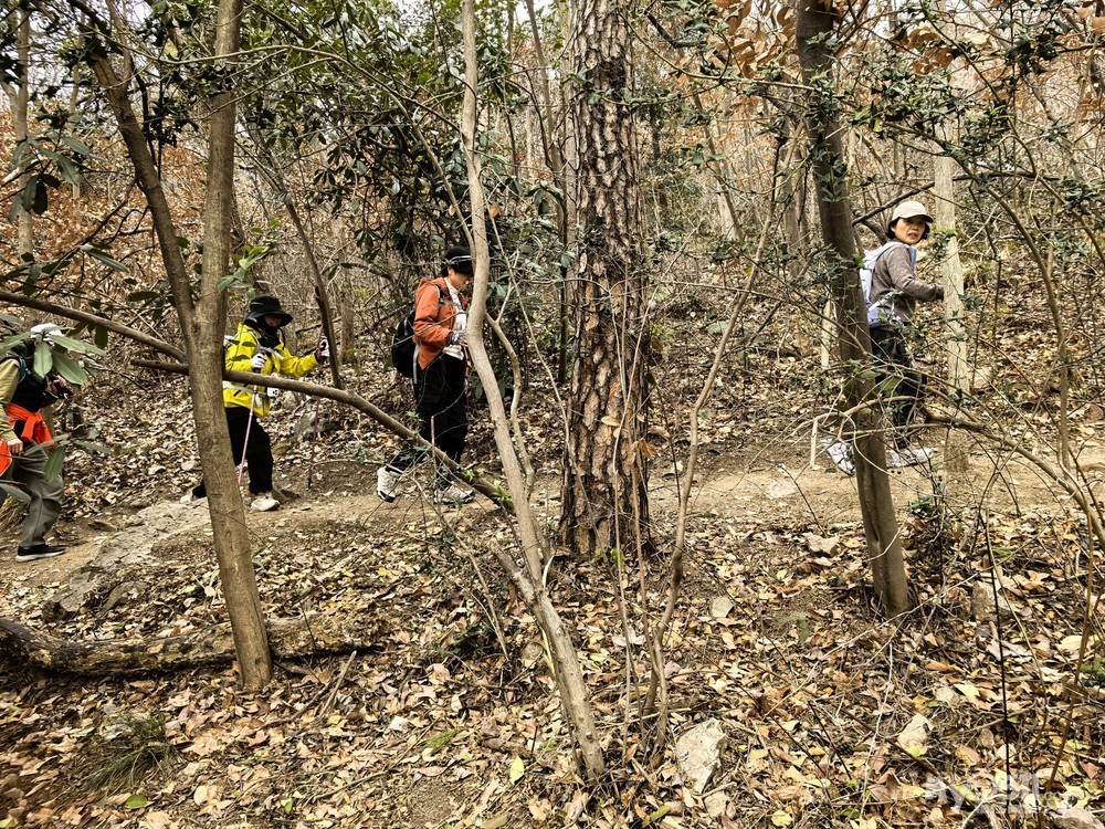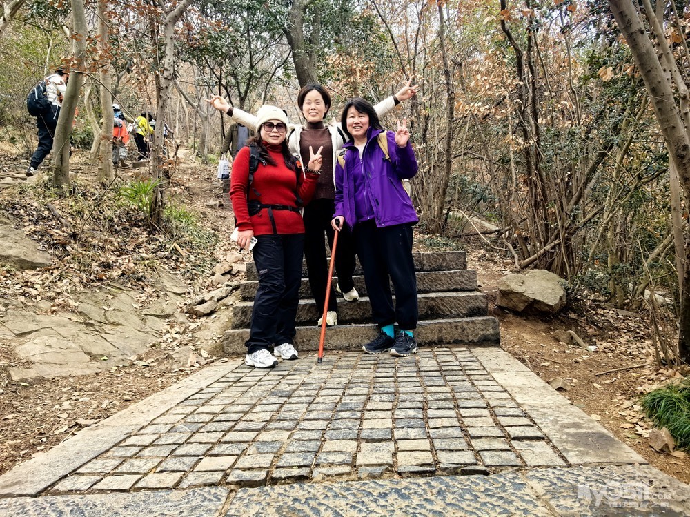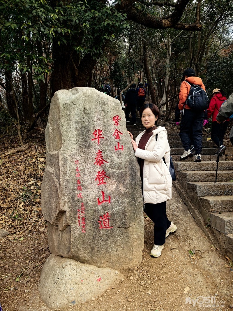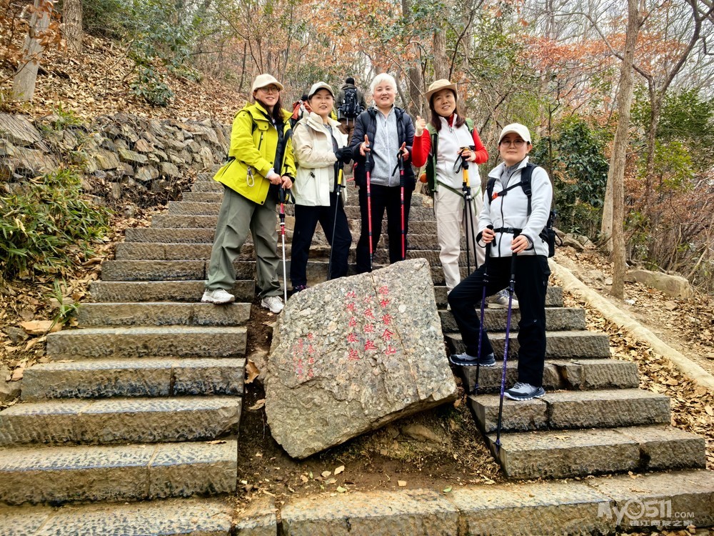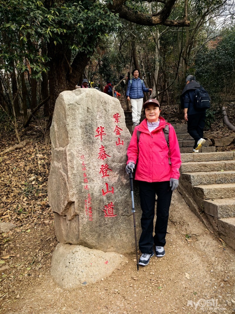 沿着紫金山人行栈道继续向前,不久便抵达博爱光标路,从这里开始缓坡上行。