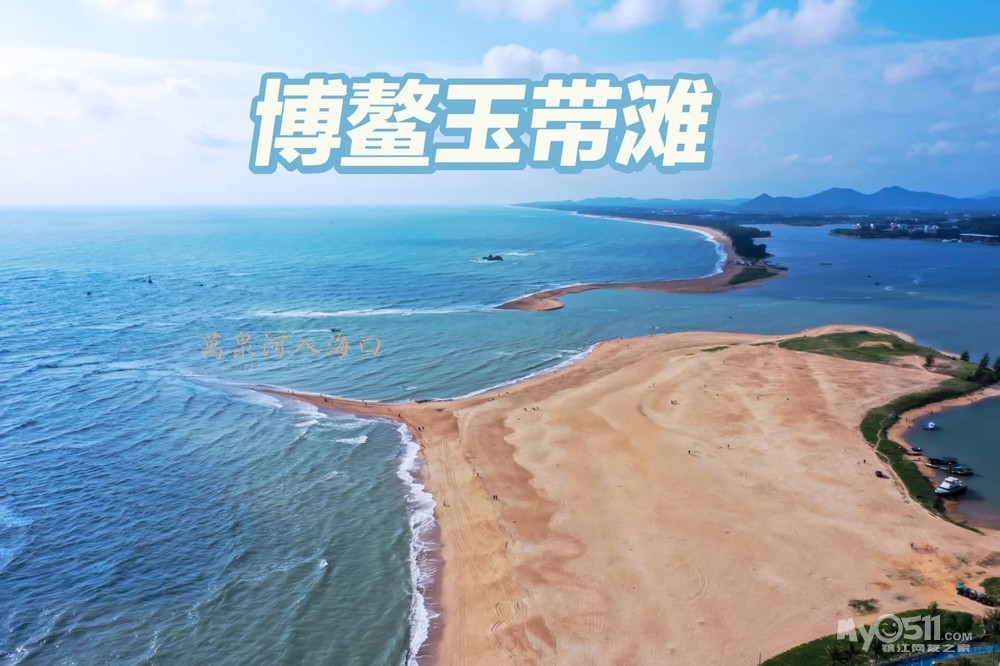 ★玉带滩★ 博鳌万泉河入海口处的狭长沙滩半岛,以其“分隔海、河,横卧万泉河”的地形奇观而闻名;