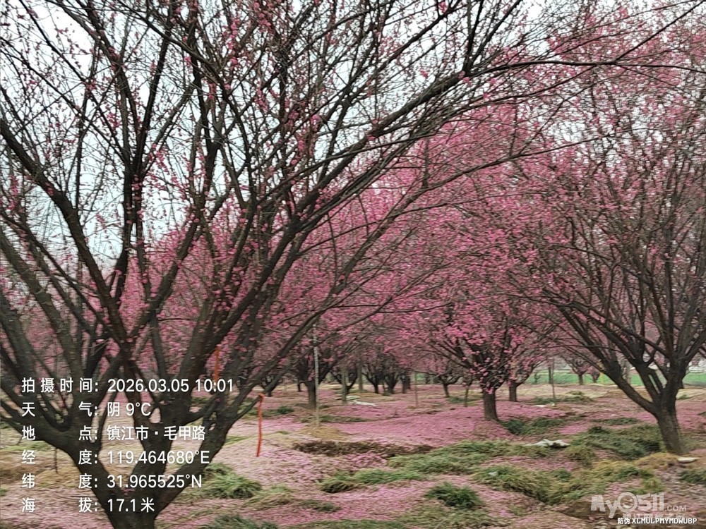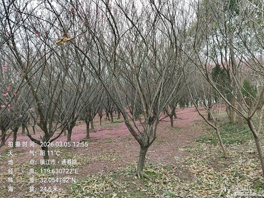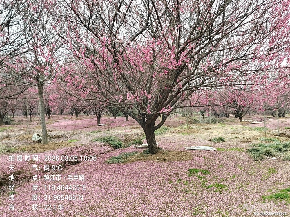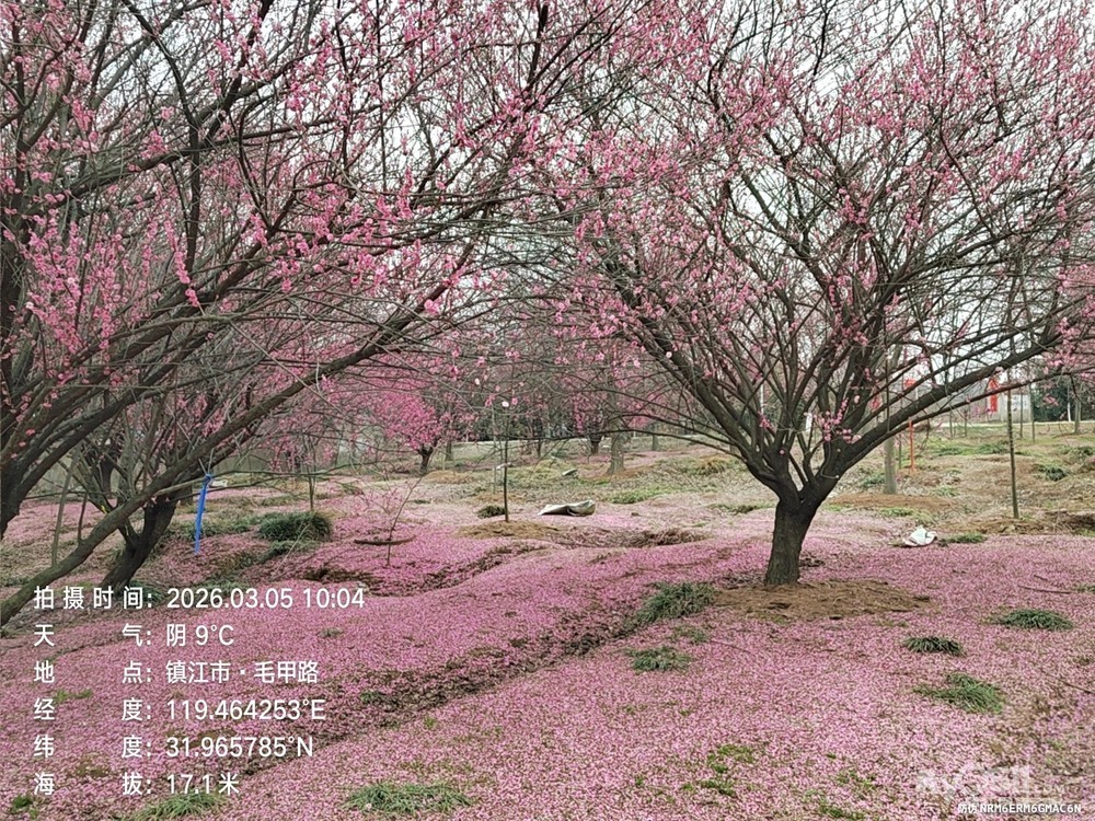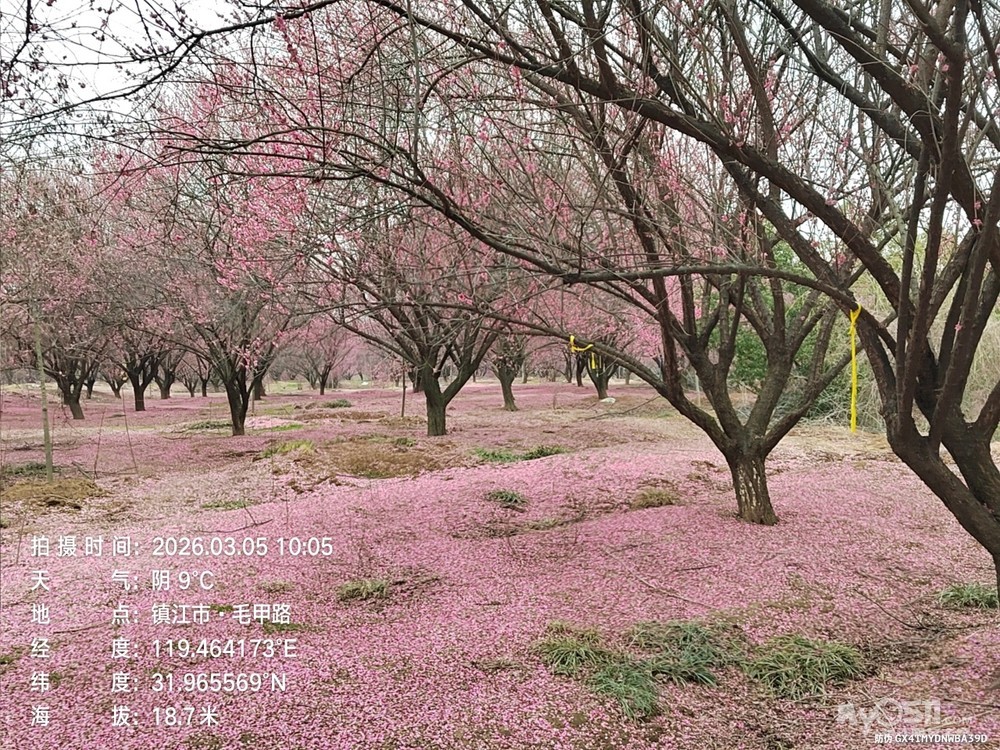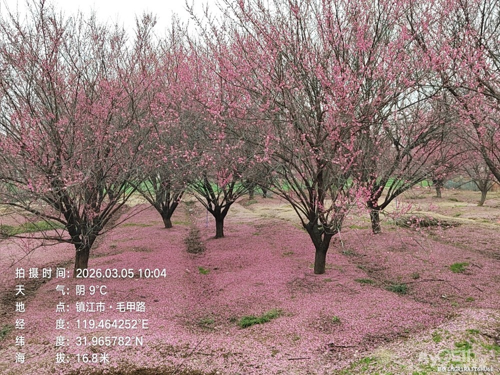 一路穿行在平坦通畅的村村通乡道,田野开阔,春风拂面,乡村景致清新宜人,车轮轻快,身心舒展。抵达毛甲村百亩梅林,只见枝头繁花已谢,只剩零星残瓣,林下铺了一红红的大地毯;漫步马圹桥体育公园,梅林间也难觅盛放景致,方知花期已过,比最佳赏梅时节迟了一周,虽有遗憾,却也坦然。