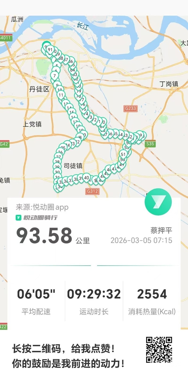 全程往返九十三公里,从清晨到日暮,历时九个半小时,于下午四点平安归家。此次骑行,虽未见繁花满枝,却收获了一路风光与骑行的畅快。踏春而行,不问花开几许,只记清风相伴,亦是一段难忘的春日旅程
