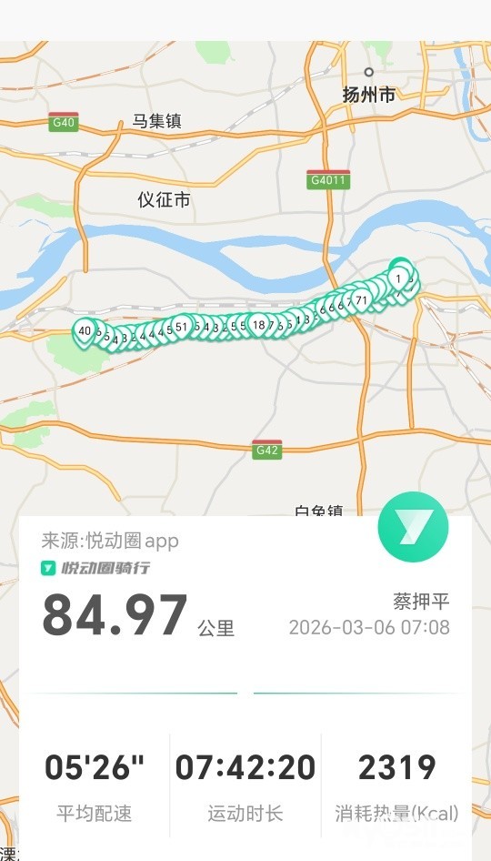 今日清晨七点出发,骑行前往宝华山国家森林公园,一路迎着晨光,车轮滚滚,身心畅快。全程历时近七小时,至下午一点四十五分平安到家,总行程八十五公里,虽有疲惫,却收获满满。