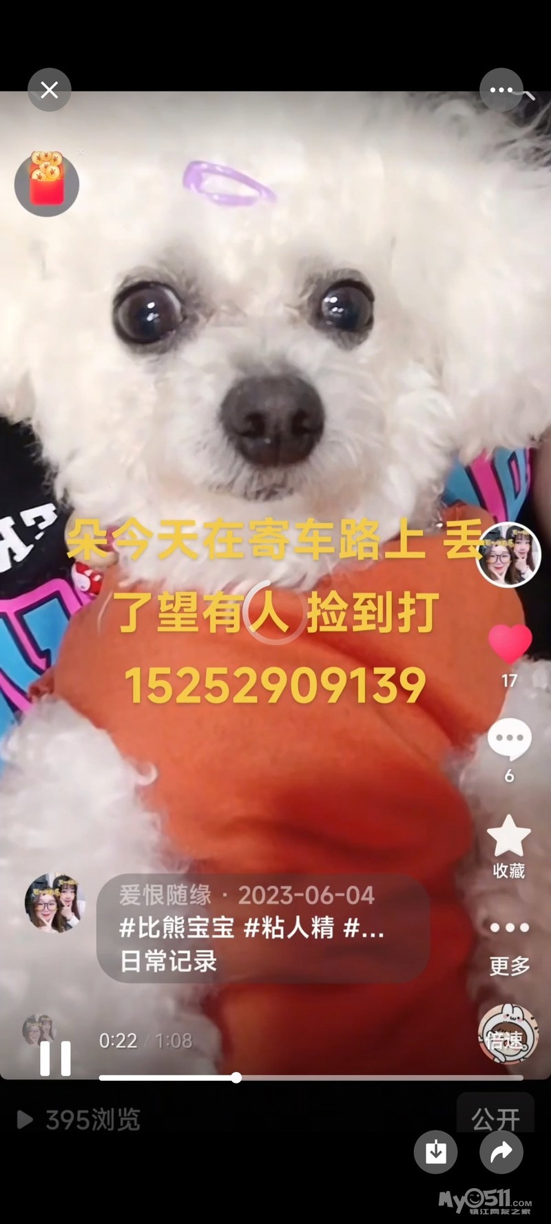 我家朵朵2月6日早上8.30左右在三茅宫附近丢失,身穿图2红白相间的衣服,小型比熊犬,失主寻狗心切,心急如焚,望看到的好心人能告知,必重谢!!!