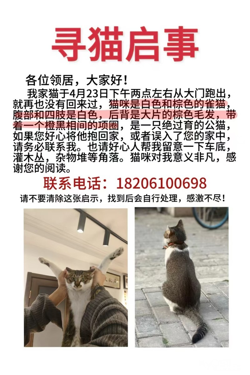 感谢!我是看到别人发的朋友圈所以发来论坛的!希望猫猫早日回家!