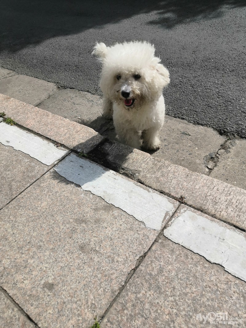 今天上午我在黄山南路的漫车道上发现一只好像是走丢的狗狗比熊在路上狂奔,