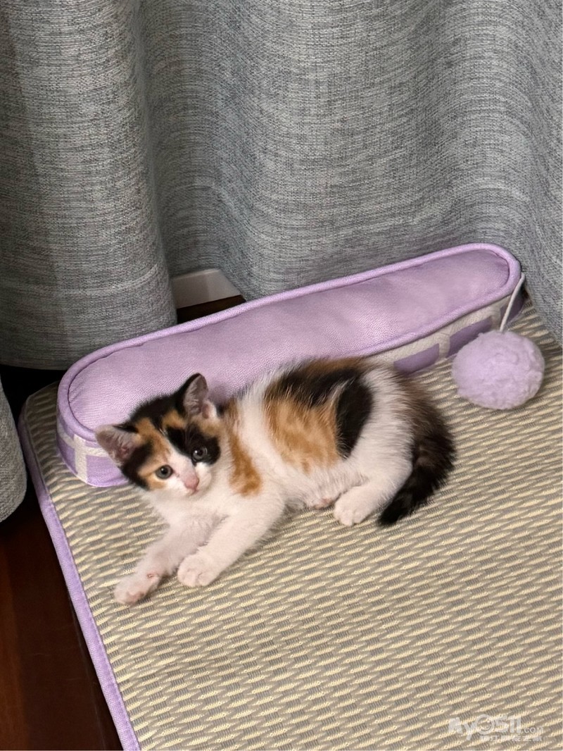 两个月三花奶猫,性格活泼,粘人,会用猫砂盆,已经体检过很健康,押金200回访半年后退回: