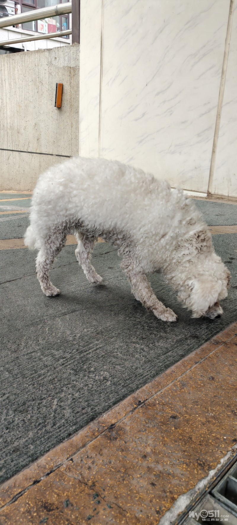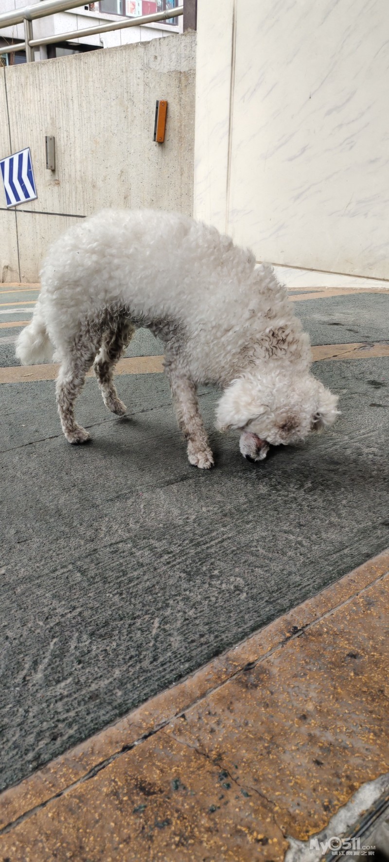 路过富力天禧院东门出入口,有一只狗,保安说是家养的走失的狗,请直接联系该小区保安