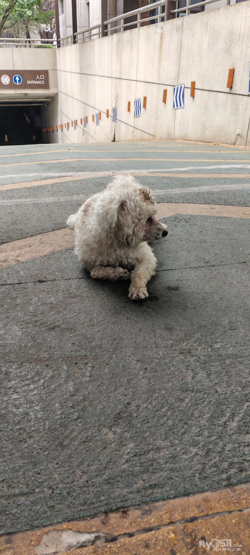 » 路过富力天禧院东门出入口,有一只狗,保安说是家养的走失的狗,请直接联系该小区保安