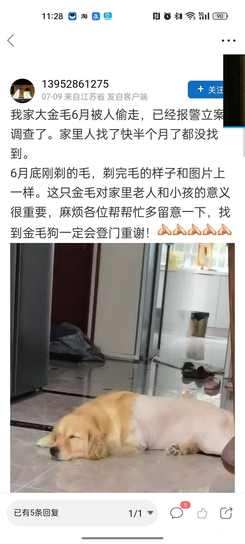 > 谁家金毛丢了