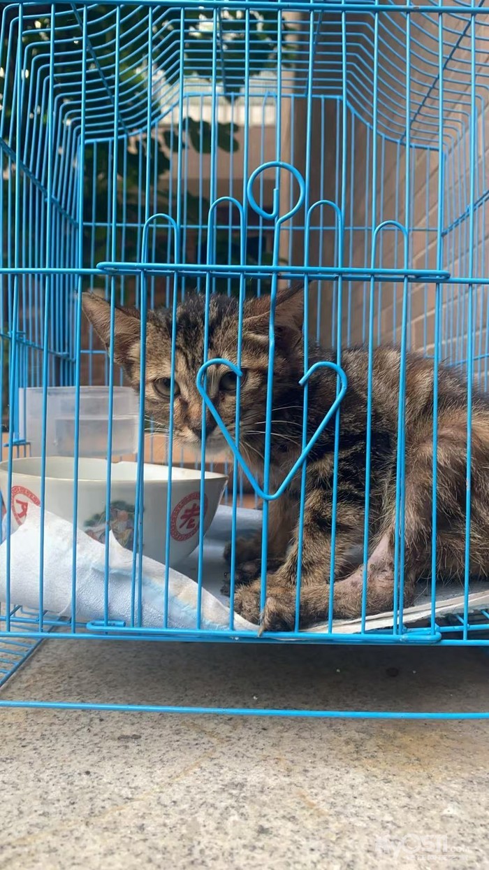 小猫是上周末晚上回去在路边发现的,目测2个月不到,性格温和胆子小,想着找个地方可以给它恢复下再找领养,目前还关在鸟笼子里