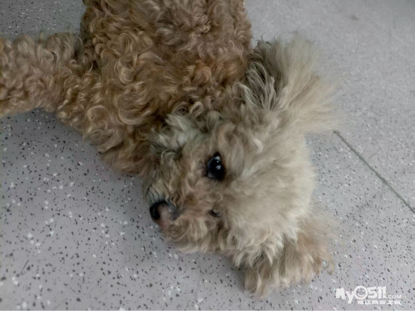 有网友在江滨医院门口捡到一只泰迪,大家正一起帮忙找下失主。