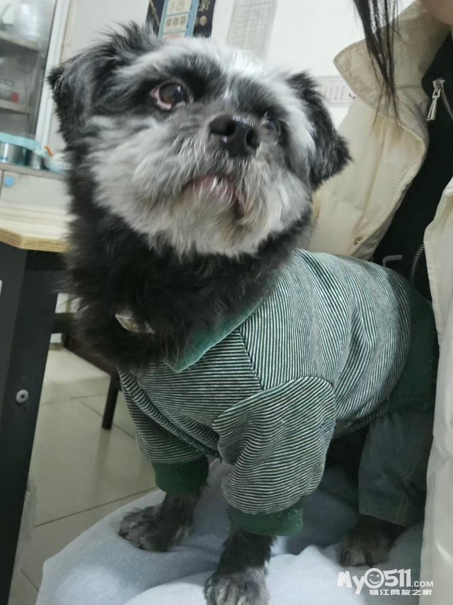 狗狗叫碳碳,于 01.12 早上 10 点左右,在丁卯新华电宾馆—神农花苑附近不慎走失。走丢时身穿绿色条纹衣(如图),有项圈,舌头上有缺口。