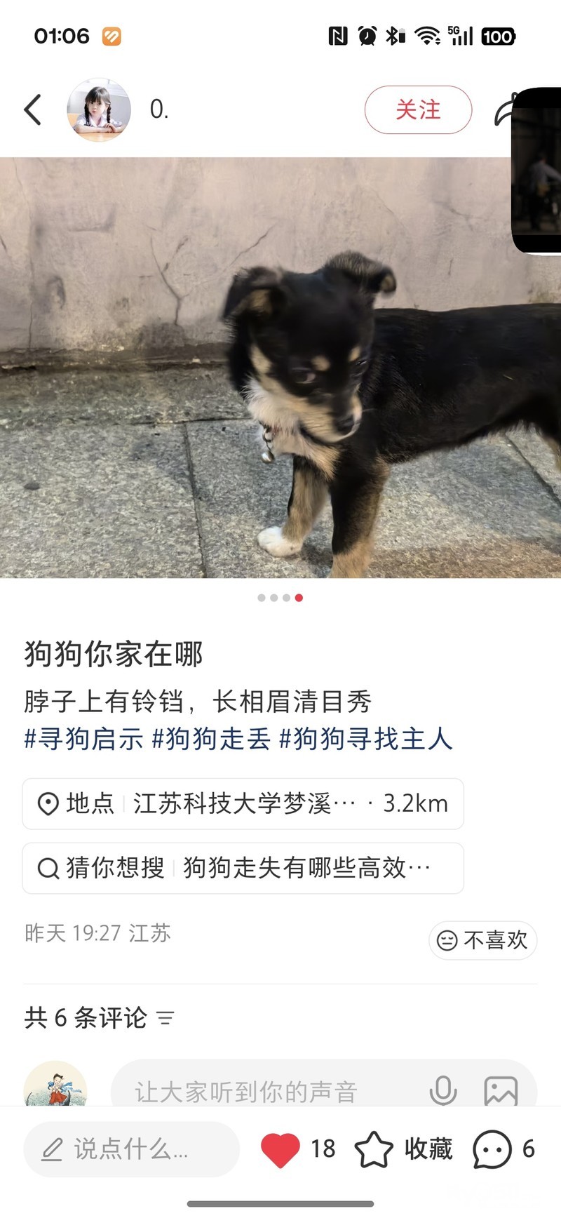 江科大附近的,谁家狗狗丢了啊?主人快去找回家吧!具体可以联系小红书这位博主!
