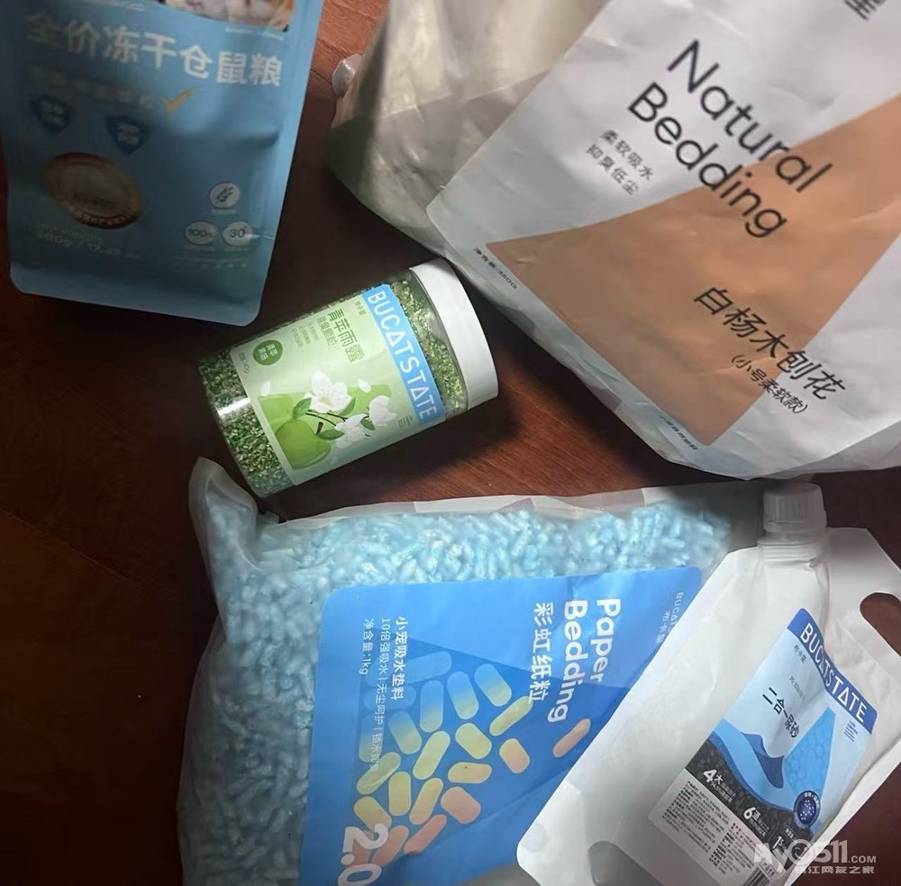 用品:亚克力笼子 水壶 躲避屋 食盆 各种粮食 垫料 尿砂 除臭 纸屑一应俱全