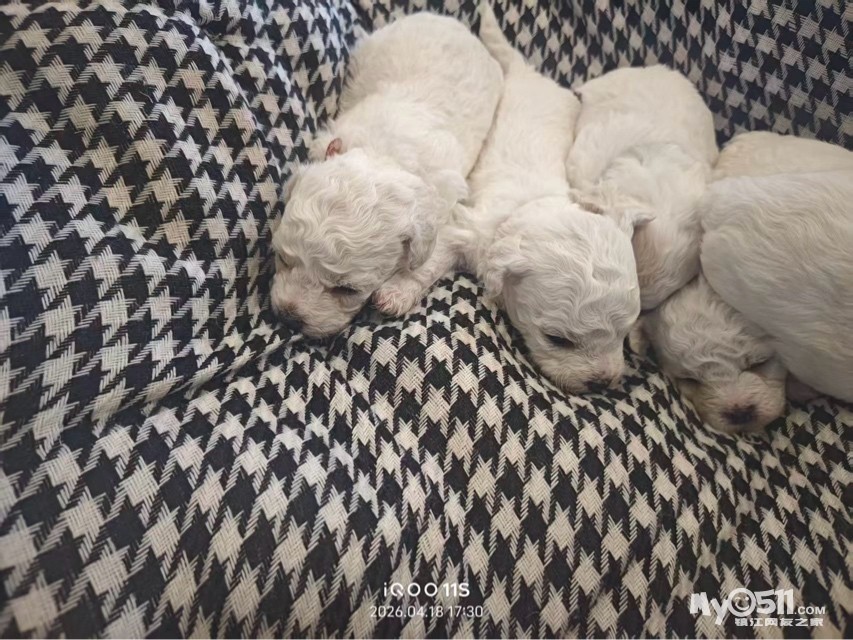 三只弟弟两只妹妹,超级活泼,3.30号出生,有感兴趣的接受上门挑选预定,比熊爸爸妈妈性格活泼,熊爸9.6斤,熊妈8斤,会握手,听的懂话,会简单的口令,非常聪明。