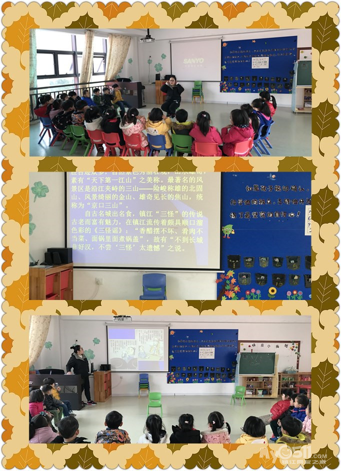 2017.4.6:亲爱的爸爸妈妈,今天上午我们进行了音乐活动《颠倒歌》,通过学习此首歌曲,促进小朋友认知的发展,思维的发展和语言的发展,同时也能陶冶小朋友们的性情。接着,我们在多功能厅学习了关于海洋的知识。下午,张老师给小朋友们介绍了镇江西津渡的文化背景,并且介绍了古老的民间游戏,小朋友们明天就可以亲身体验一下了哦。愉快的一天结束了,宝贝们,明天见!