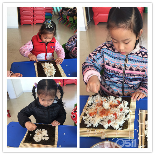 孩子们亲手制作寿司,很有成就感哦!