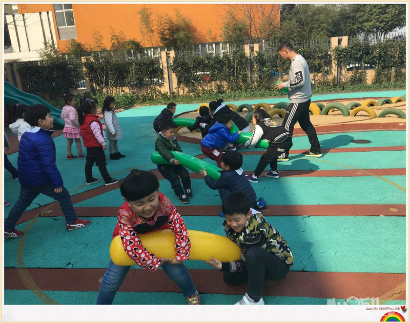 亲爱的爸爸妈妈,今天是快乐星期五的活动《快乐的民间游戏》昨天我们一起认识了许多民间游戏,同时还票选了自己喜欢的游戏。那今天我们一起玩了,抽陀螺、跳房子、滚铁环、踩高跷。这四个游戏孩子们玩的非常兴奋,当四个游戏玩完了之后孩子们还意犹未尽呢,相信今天的游戏也让勾起爸爸妈妈小时候的回忆了吧!回家之后孩子们还可以和爸爸妈妈们玩一些其他没玩过的游戏。