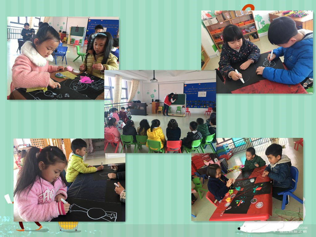 2017.2.17活动内容:亲爱的爸爸妈妈,今天我们进行了快乐星期五活动---春创《我爸爸、我妈妈》这个活动主题是画绘本上的内容。在讲故事的时候孩子们自己讨论了很多自己的想法,说是我想让爸爸变成什么、我的妈妈会做什么、我的爸爸妈妈爱唱歌、我们的爸爸妈妈都生活在地球上,等等这些想法都是绘本书上没有的,但是孩子们能经过自己的想象自己所看到的绘画出来,虽然有些难度,但是孩子们还是很乐意、很耐心的去完成。有些宝贝还说自己是个粉刷匠。不过今天孩子们的画由于时间关系,还没有画完,但是本周未完成的地方在下周继续完成,墙的面积比较大,所以要花很长时间哦!期待我们最后的成品。下午我们复习了单词、律动,新学句型:How do you feel? I feel cold/chilly…儿歌:《How's the weather》