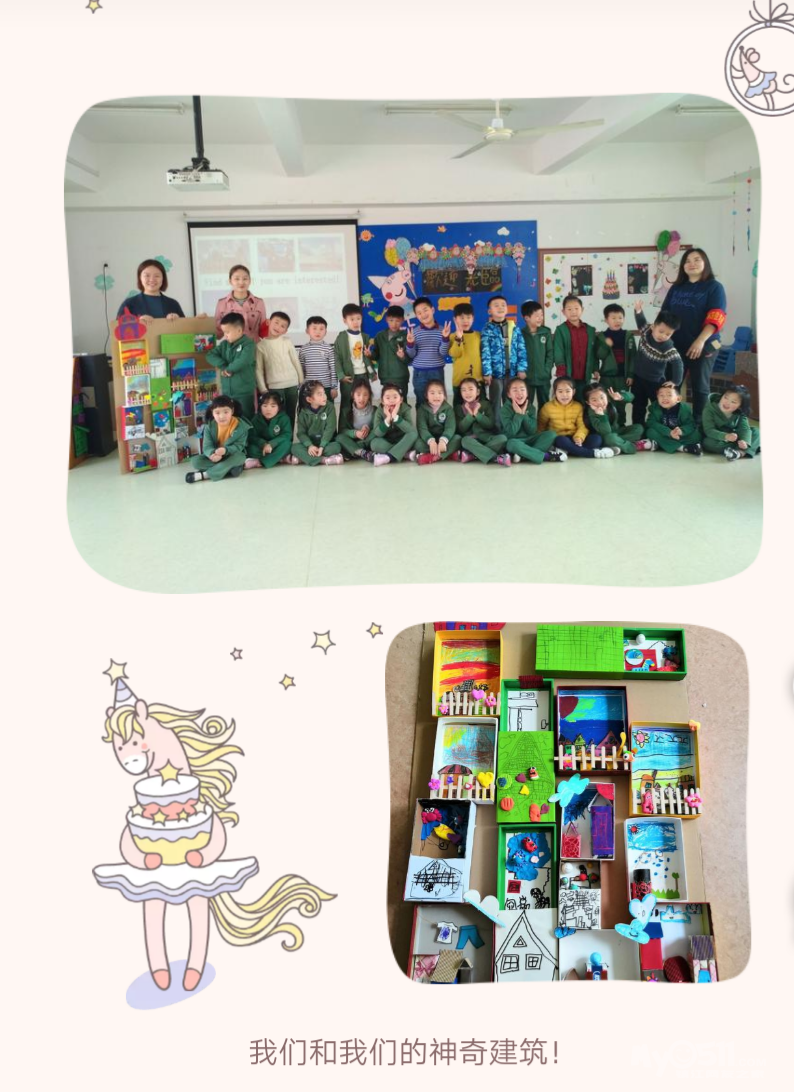 这是一个有魔力的盒子,里面装着神奇的建筑世界!异想天开的小建筑师们,有着天马行空的想象力,在第四位老师的带领下,大家分工明确,有人负责设计,有人负责搭建,有人负责美化……创造了神奇的建筑,惊艳了岁月!孩子们在集创中感受和发现美,用自己的方式去表现和创造美,体验和他人合作的乐趣!