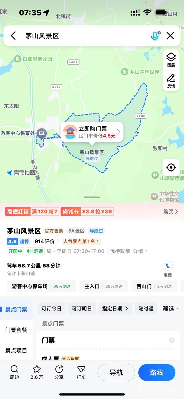 曾经有一次跟着导航走结果导航到了金坛茅山