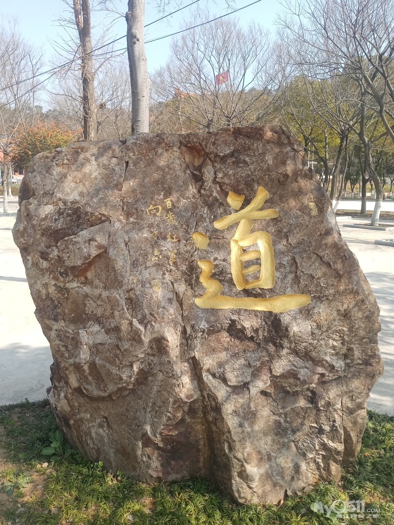 首先进入眼帘是,三茅宫道场的第一个广场,广场边有一个石碑,石碑上写“道”字,后边是“福”字,寓意先问“道”,后有“福”。