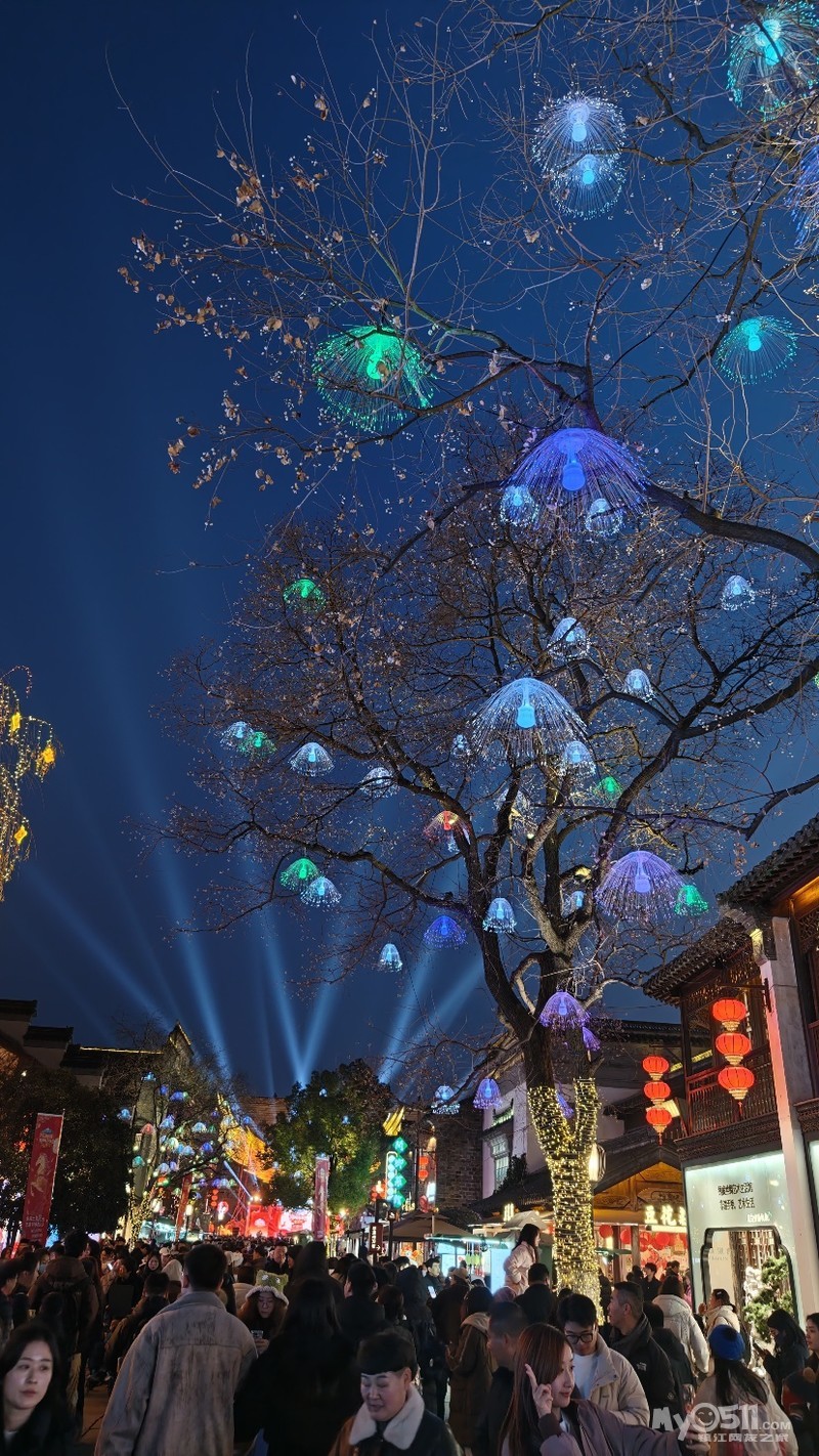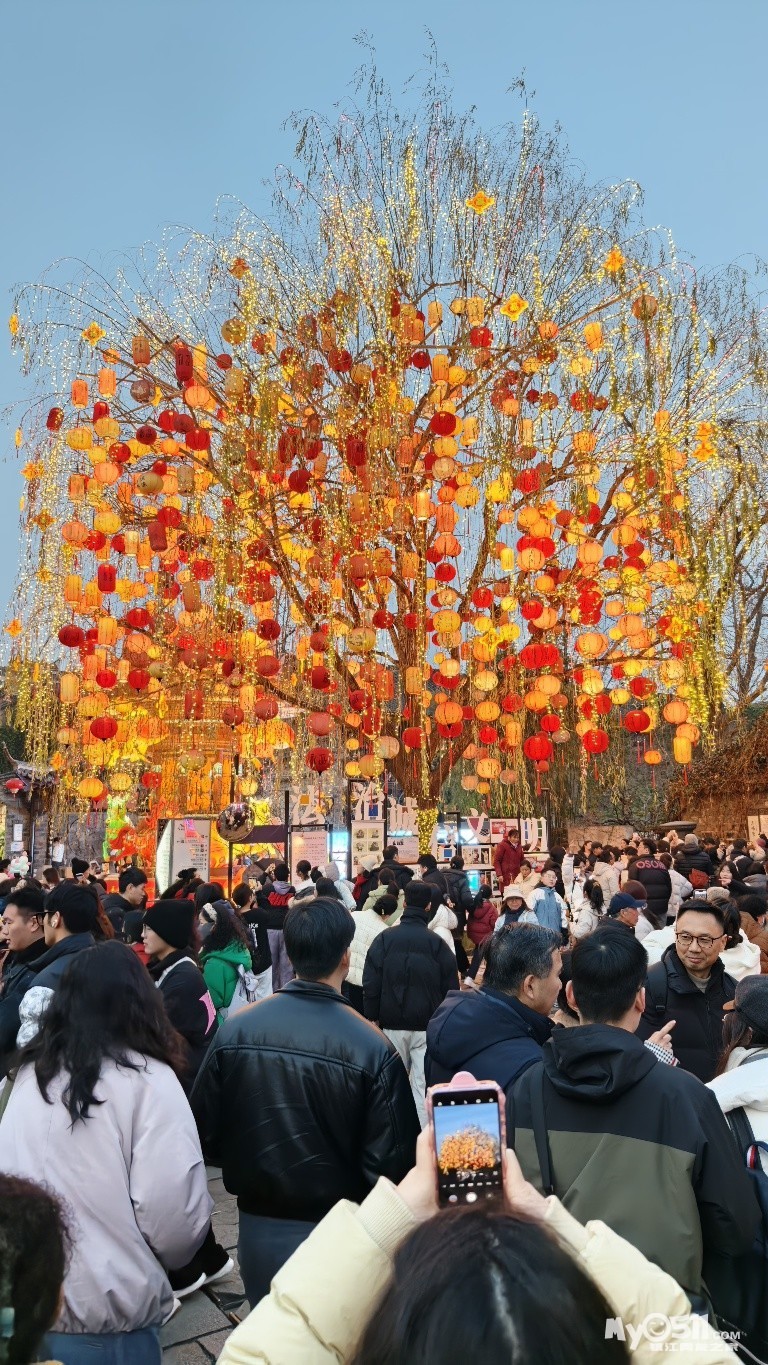 南京老门东灯会祈福树,我刚刚看到还有直播的,发个帖子作为纪念,我是今年1月18号去的。这个祈福树有999盏红,黄,粉色福灯,宛如银河倾泻,位于南京老门东历史文化街区三条营巷口,已成为王炸现象。其绚丽的现象被形容成“东风夜放花千树”的现实写照