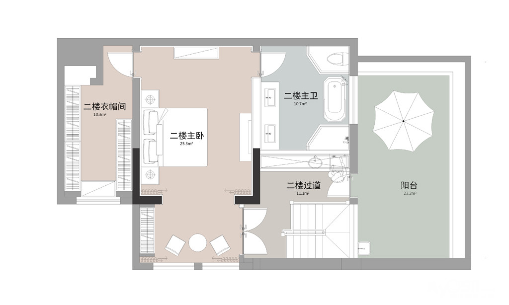 本案是一套200m 2左右顶层复式户型,考虑到业主既想要开阔的视野,