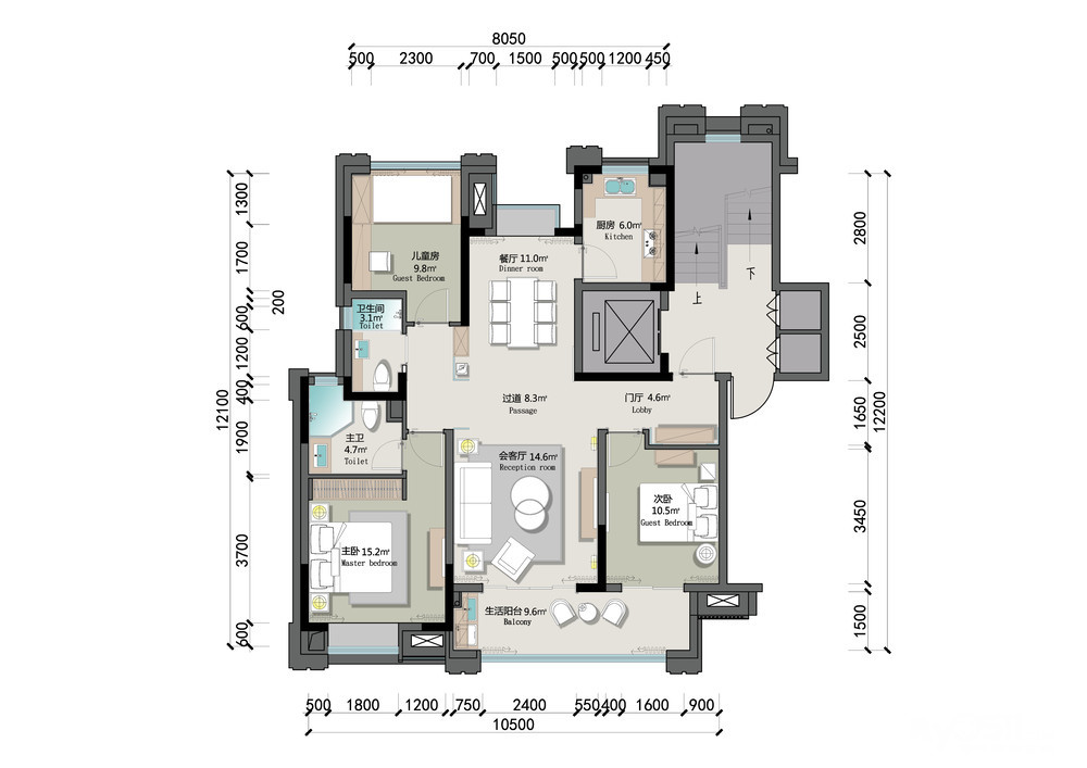 以睿智冷静的棕榈色、高贵典雅的米白为色彩基调