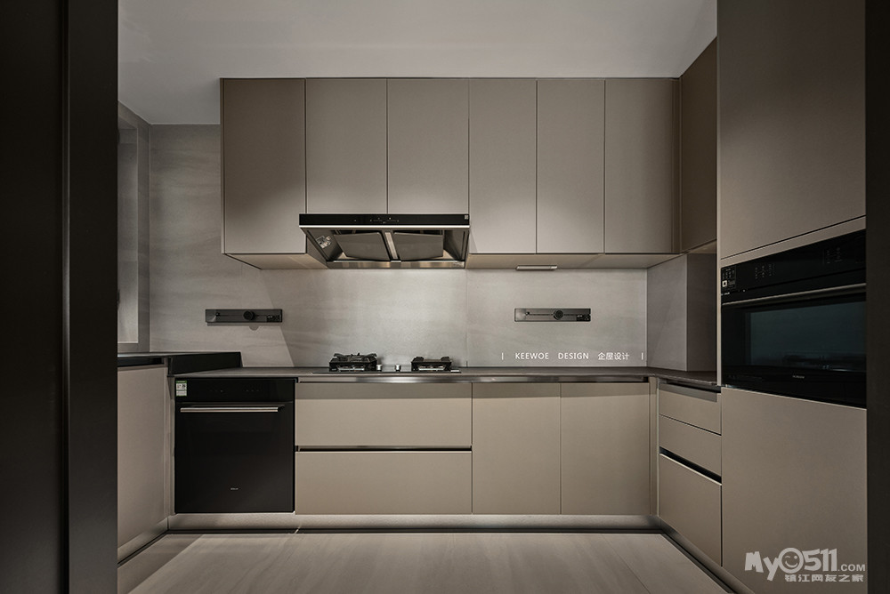 整体厨房按照业主习惯和需求,将橱柜和厨电形成一个有机的整体,活动式插座也选择和主色调相协调的颜色,在视觉上更加清爽高级。