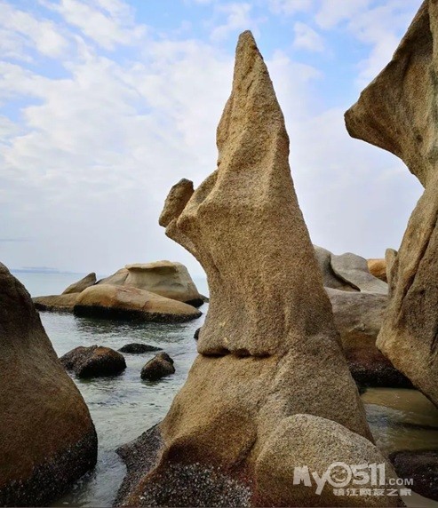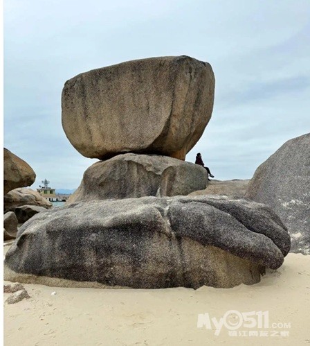 磨子石公园位于巽寮湾东部的一段奇石海岸线,远看如同一座人造大型的石磨,高4米多,重达200吨,由两块重达百吨的巨石相叠而成。狂风吹来时,巨石轻轻摇晃不定,风涛推磨、呼呼作响。