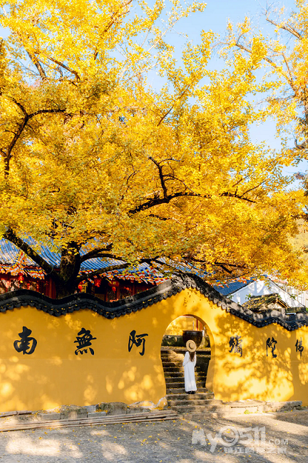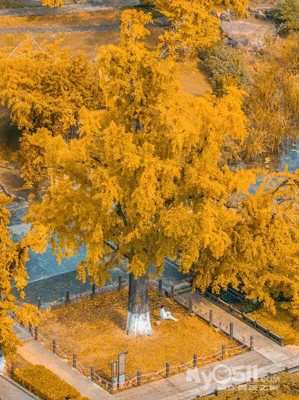 银杏皇后:空王教寺附近1500多岁的“老奶奶”,黄墙黛瓦配金叶,古风照片一秒出片,还能进寺祈福许愿。