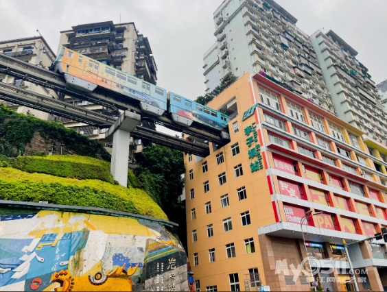 魔幻山城2号线-【李子坝观景平台】(时间来得及就乘坐),感受重庆十八怪之一的“轻轨楼中穿过来”被网友称为神一样的交通。