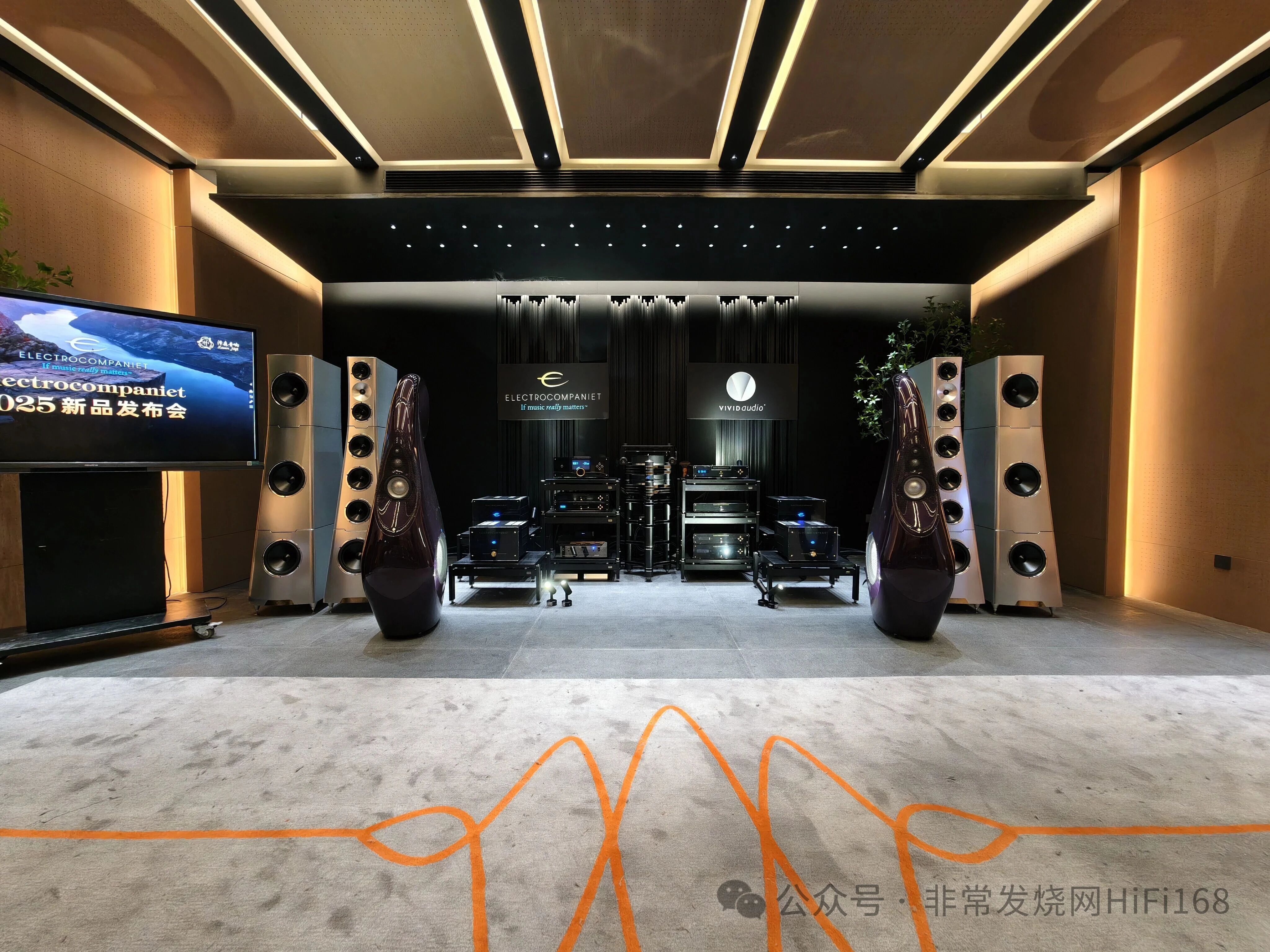 紧接着,Vivid Audio的国际销售经理Ewald Verkerk先生也亲临发布会现场。他上台分享了Vivid最新推出的Cu系列新品所蕴含的核心技术与前沿创新。Vivid Audio新推出的Giya Cu,依旧秉承了品牌轻量化、低储能以及高刚性的设计理念。其技术亮点在于采用了全新优化过的复合材料单元结构,并改良了声学腔体,使得振膜的运动更加线性,失真率显著降低。此外,全系列音箱继续沿用了Vivid标志性的反谐振管(Tapered Tube)吸能技术,这一设计有效抑制了单元背波的共振现象。同时,通过重新设计的内部力学支撑结构和箱体曲线,音箱在保持其纤薄外观的同时,也获得了更高的结构稳定性。新一代的专利驱动单元与升级后的分频网络相互配合,使得Cu系列在动态表现、解析力、瞬态响应以及音场一致性方面均有了进一步提升,为用户带来了更加精准、通透且富有速度感的声音体验。