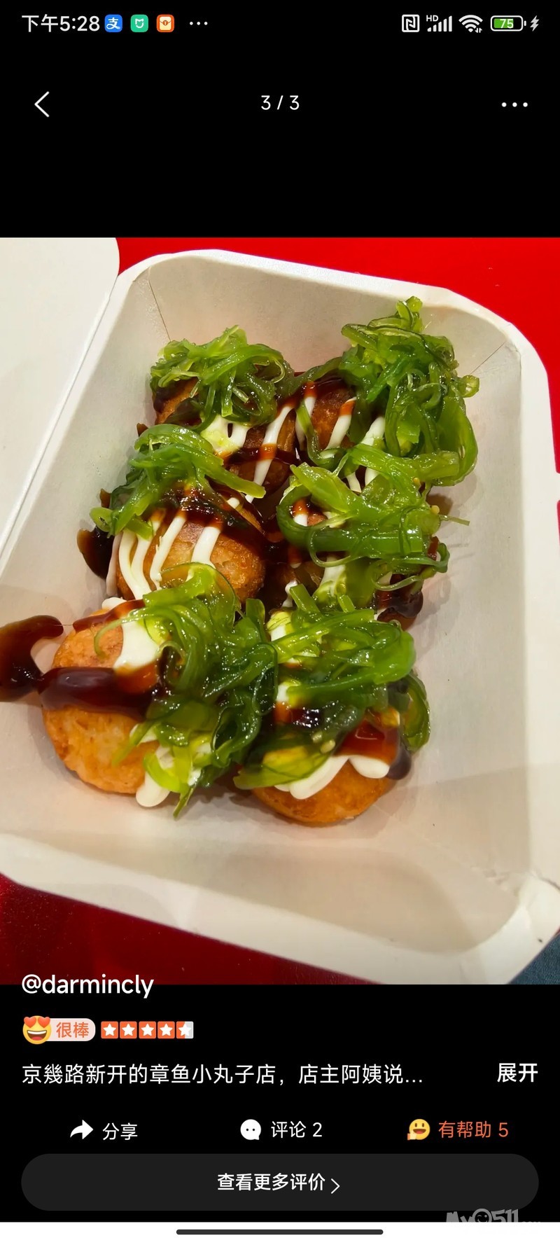 章鱼小丸子不好吃,干巴巴的
