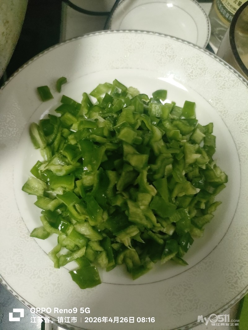 本来是跟菜场要来葱了,但是后来青椒粒已经可以增色了,葱就没放。