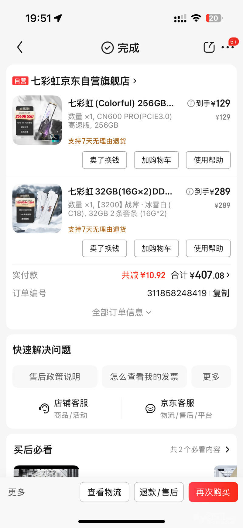 内存 七彩虹 DDR4 3200 16g 两根