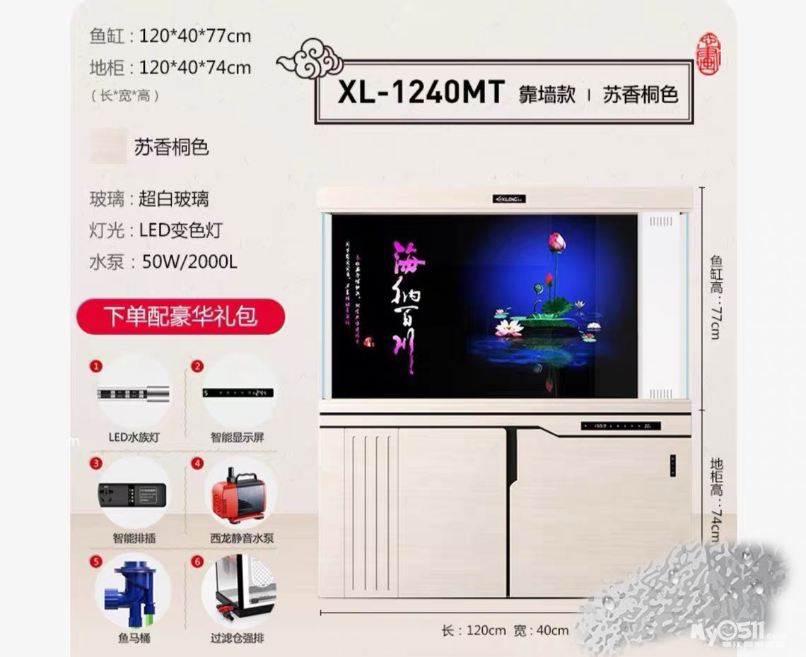 带豪华礼包:LED水族灯、智能显示屏、智能排插、西龙静音水泵、鱼马桶、过滤仓强排