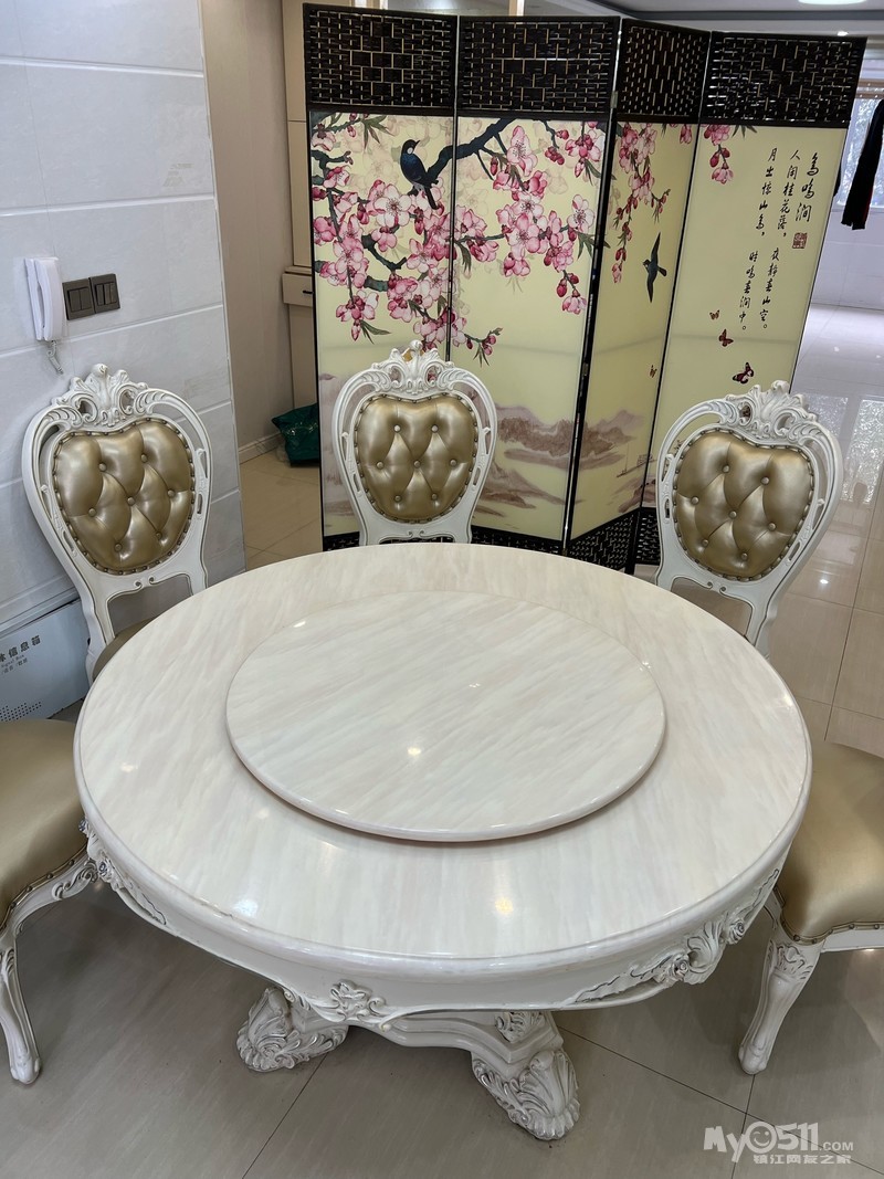 大理石材质欧式餐桌带旋转盘+6把真皮靠背座椅,实木家具,耐久度很好!父母之前入住时八千多买的,现在留给我一个人住了,闲置转卖,适合一家老小那种人多聚餐的家庭,便宜出了~13914199131