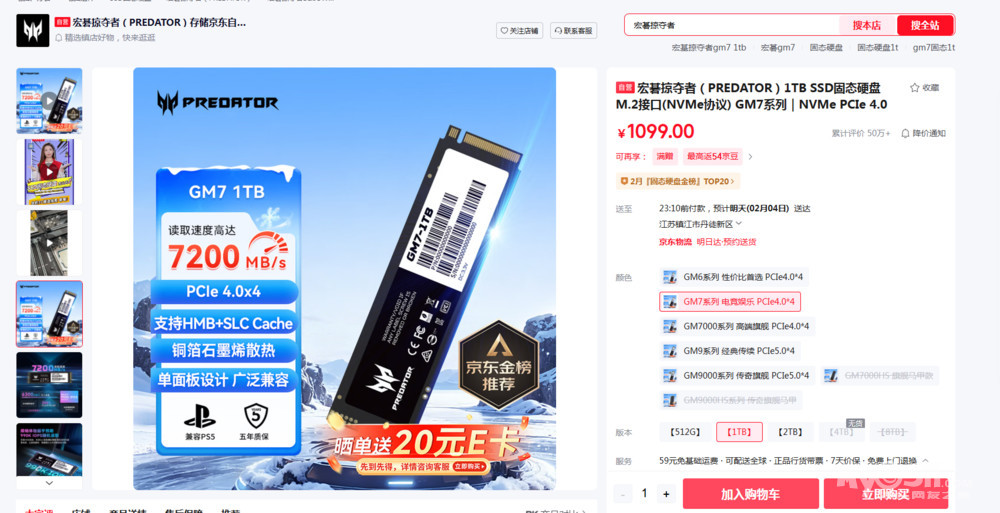 » 宏碁 掠夺者GM7 1T NVME 原包装未拆封 960元,明盘不还价