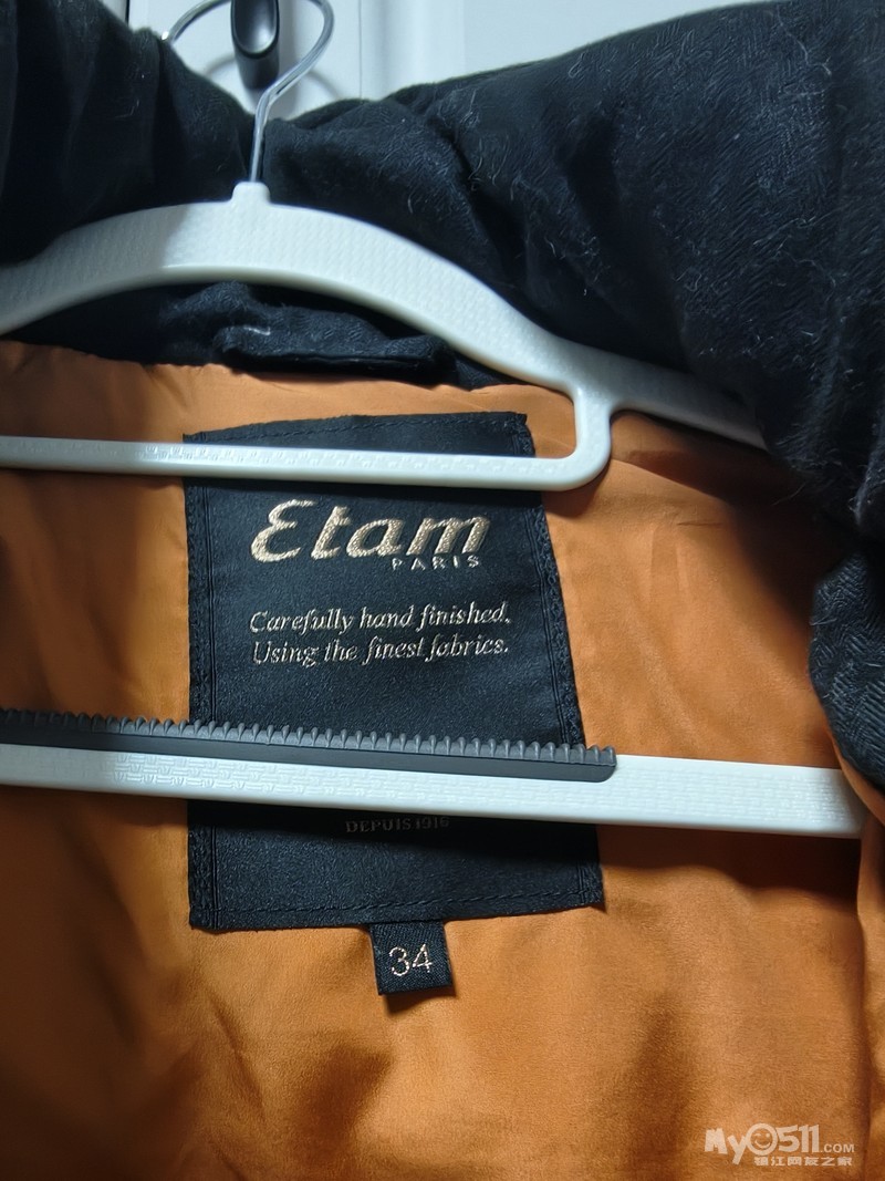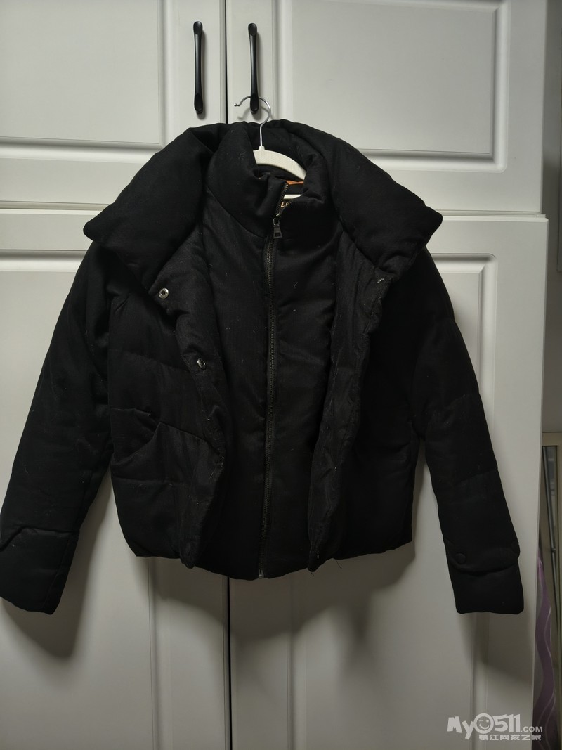 Etam黑色羽绒服,34码,短款立领设计,填充物灰鸭绒,成色几乎全新,厚实保暖,衣服保存很好,无明显使用痕迹,50元