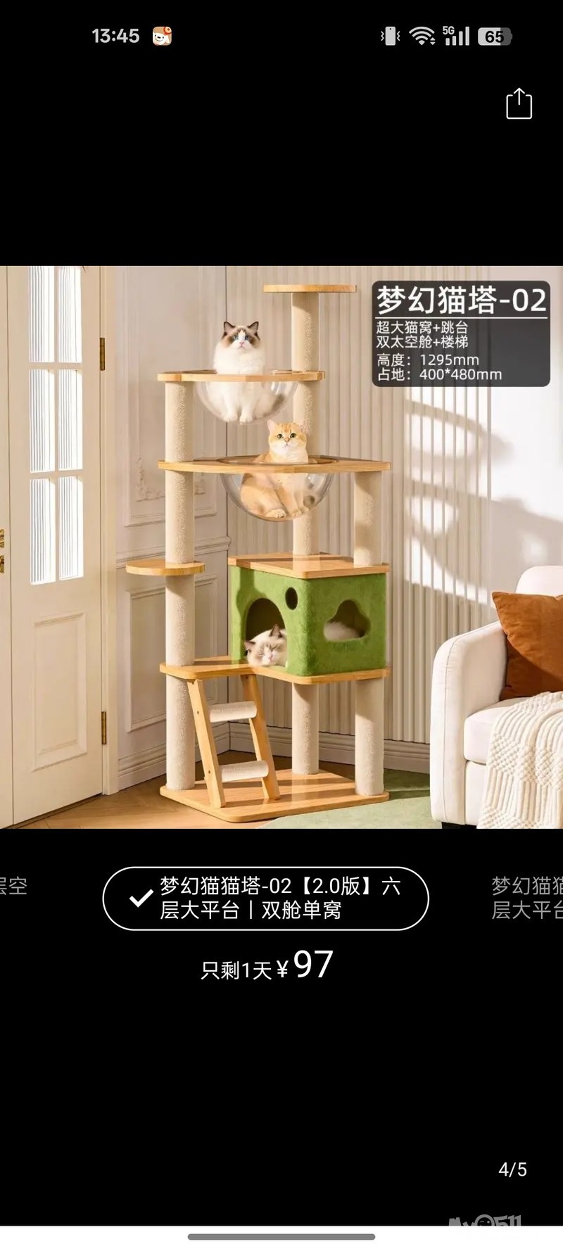全新猫爬架,如图,全新,才买来几天,家里猫不会爬