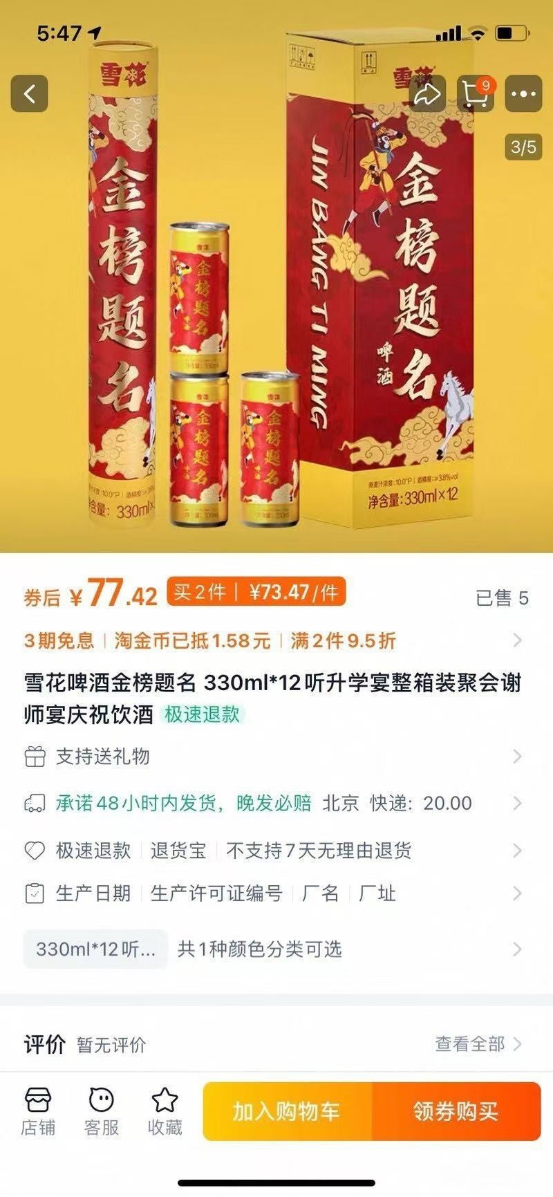 » 出 雪花啤酒,20元一箱