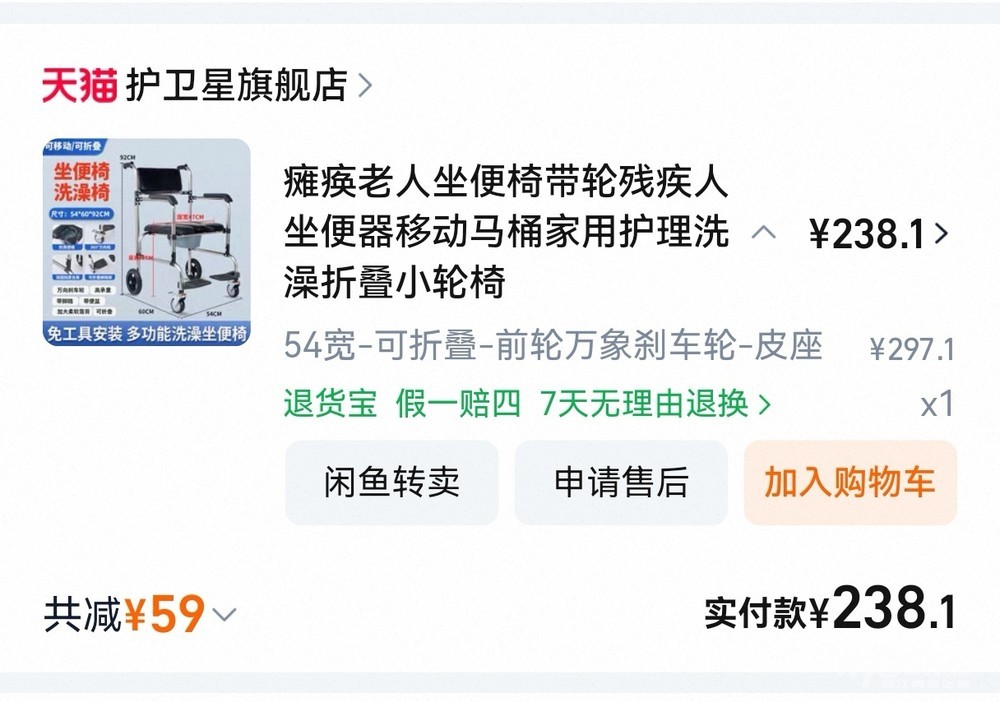 低价转老年人用的洗澡轮椅
