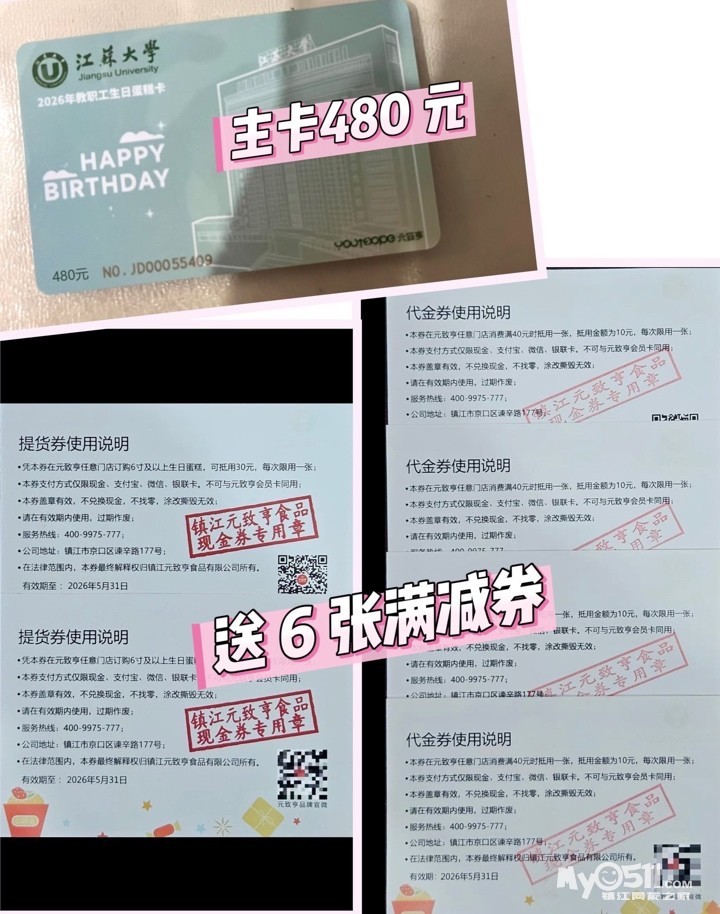 出元致亨储值卡,主卡里面480 元,送 6 张满减券。