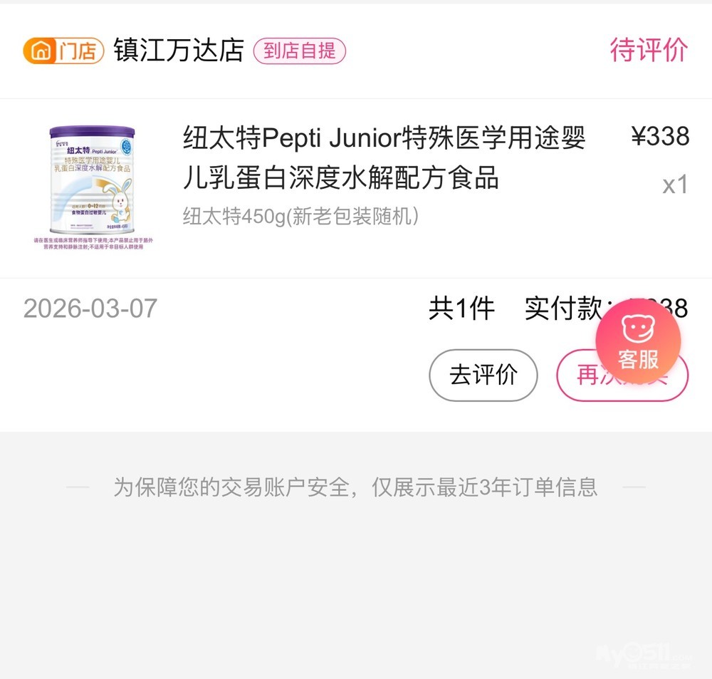 3月7号购买于镇江万达孩子王,纽太特已经开封喝了5勺子,现在改喝羊奶粉了,这罐纽太特150出